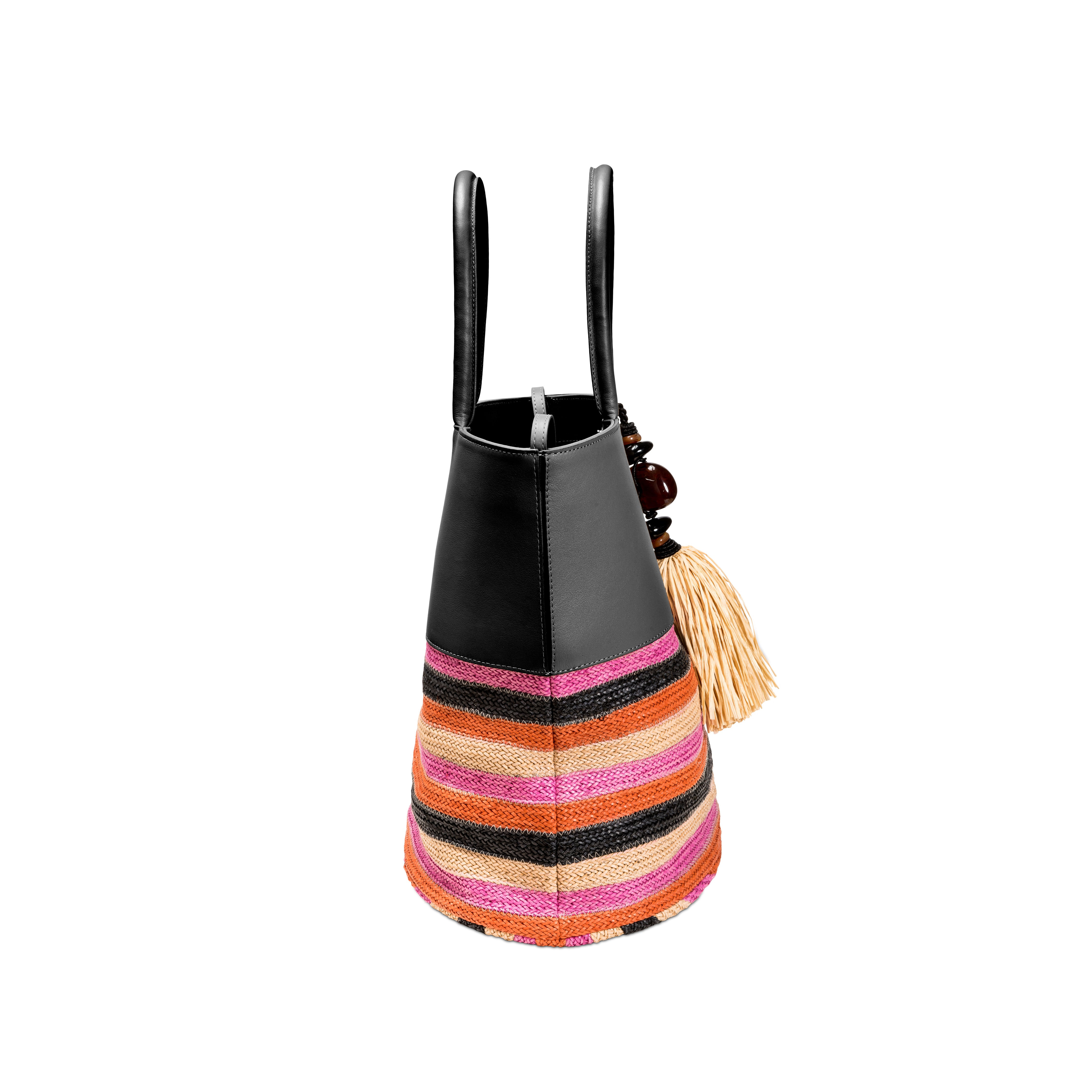Description : Leather & Raffia Braiding w/ Stone & Raffia Tassel