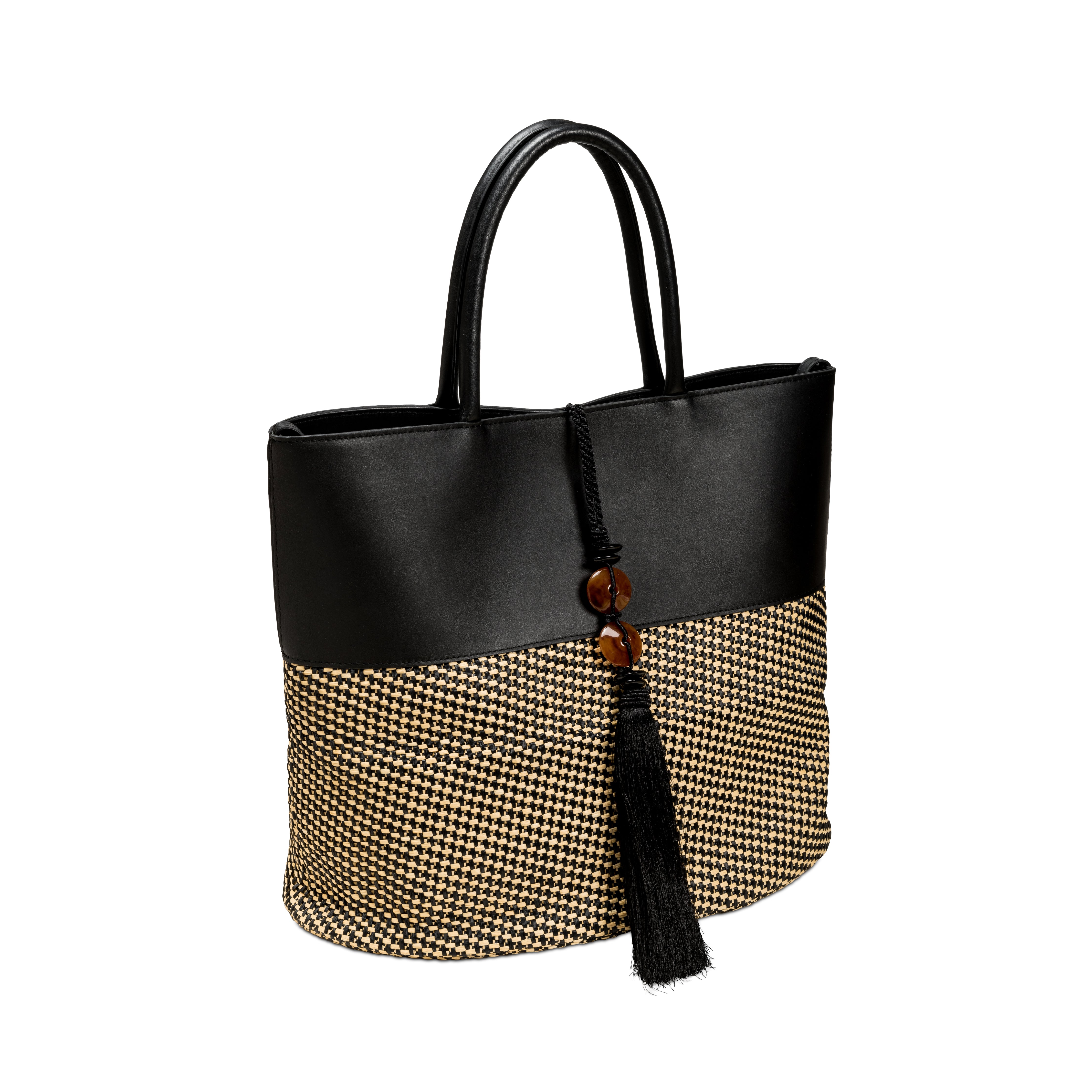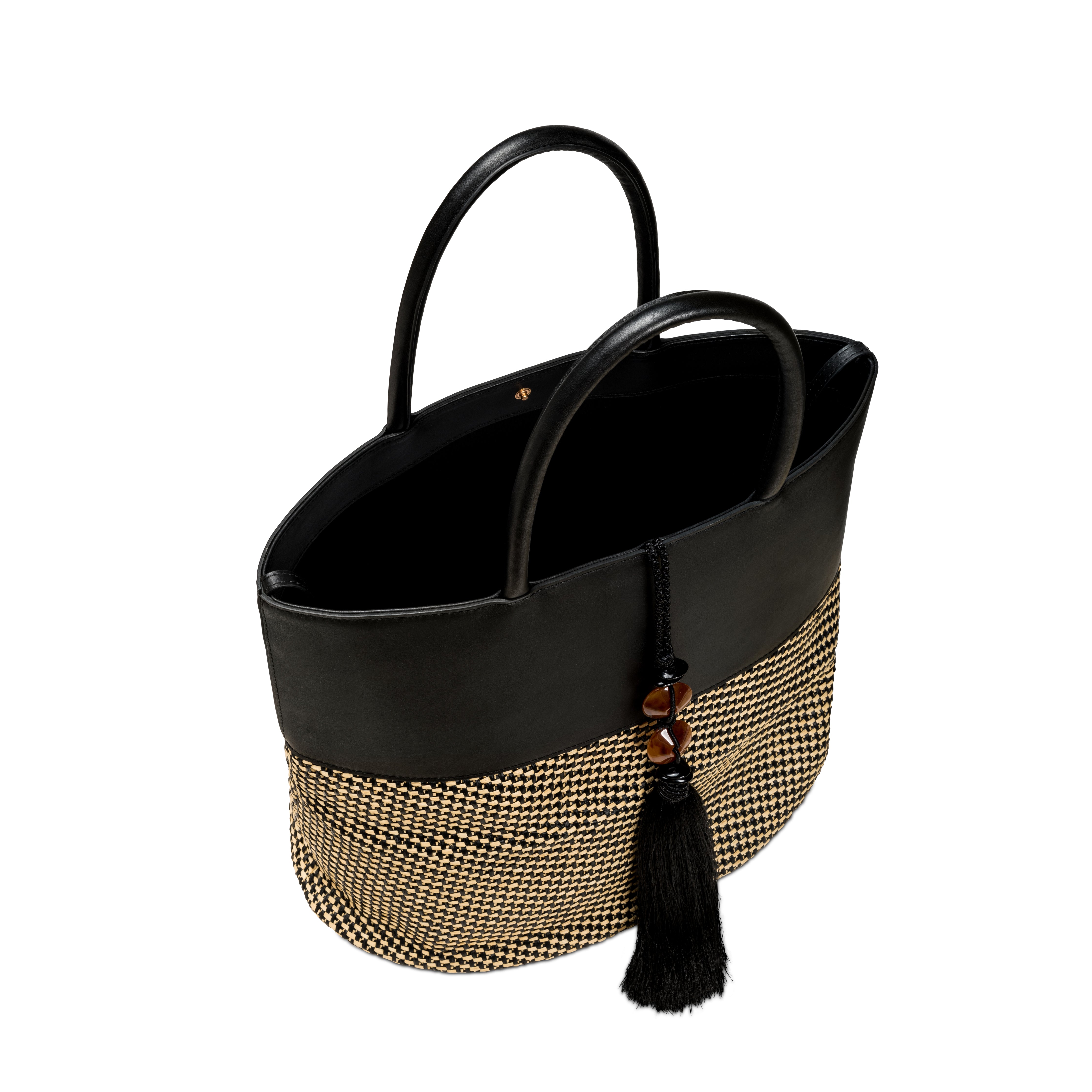 Melita Large Round Tote Bag - Black & Natural