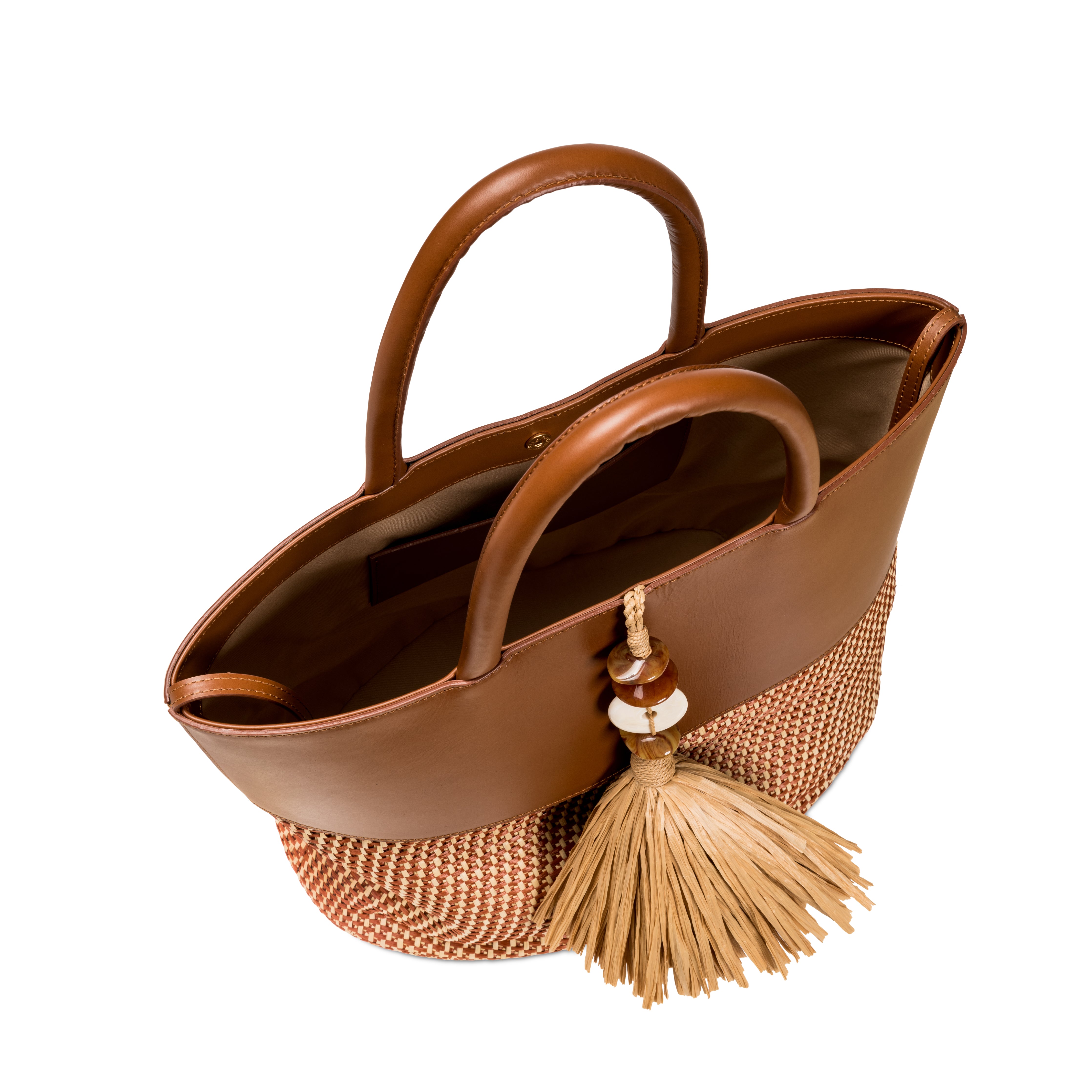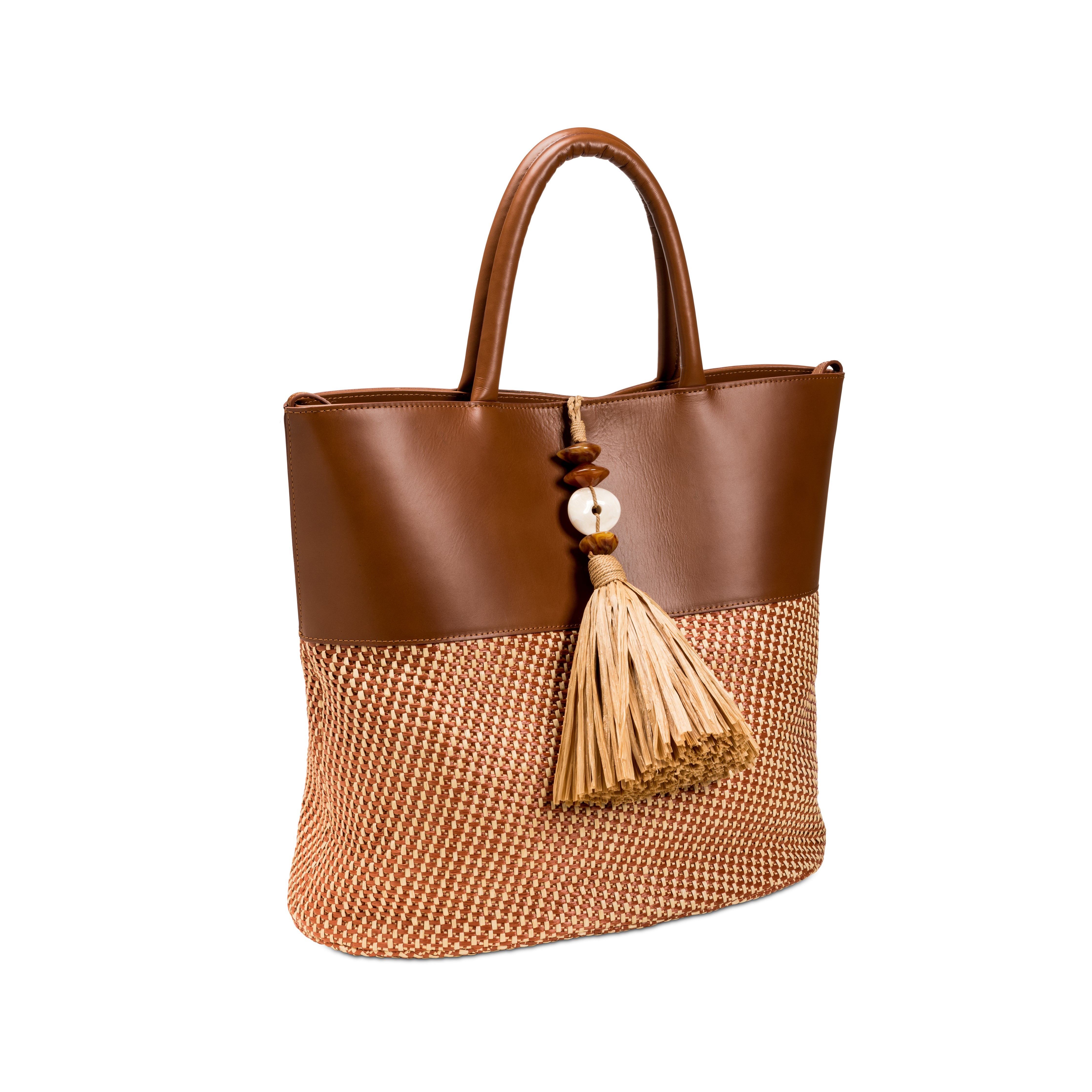 Description : Leather & Lattice Braiding w/ Stone & Raffia Tassel